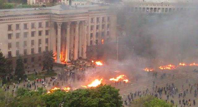 The House of Trade Union in Odessa set ablaze by neo-Nazis on May 2, 2014.