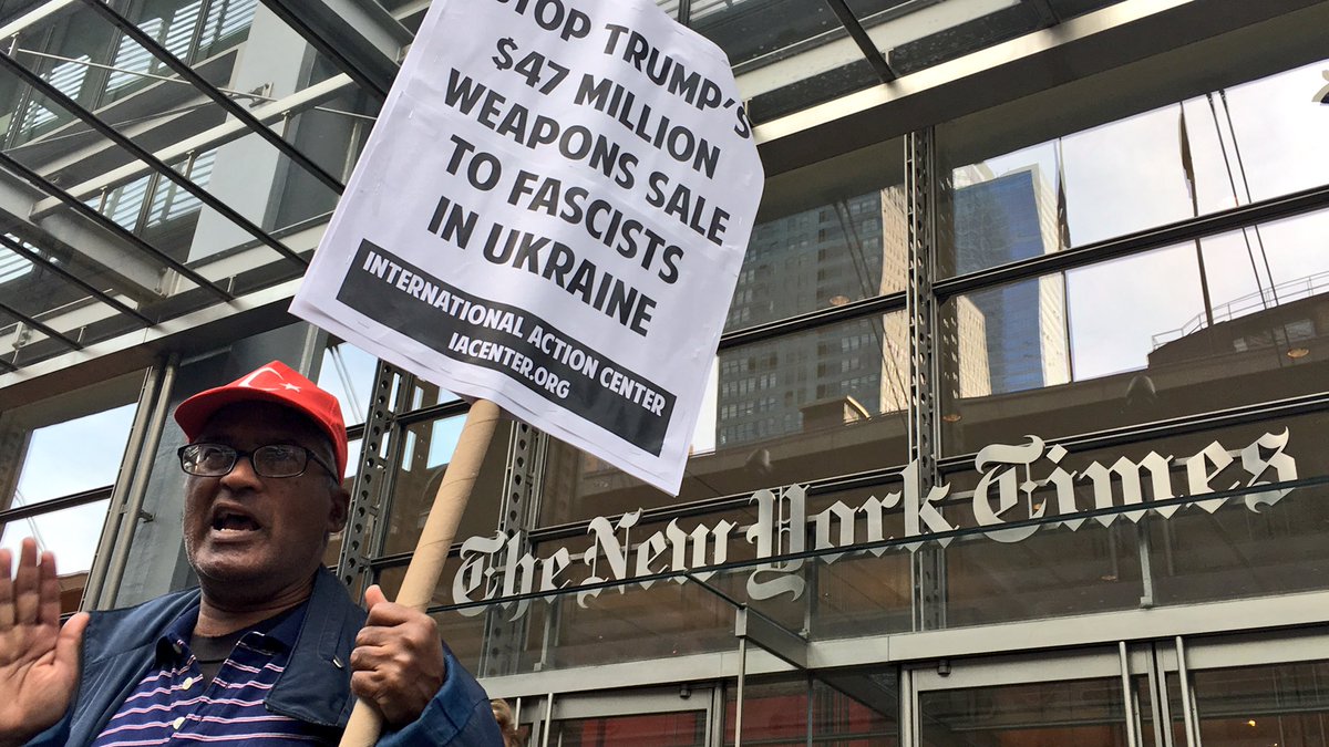 Chanting “New York Times lies! People die! From Odessa to Palestine!” activists then marched down 42nd Street to the headquarters of the U.S. “newspaper of record.”
