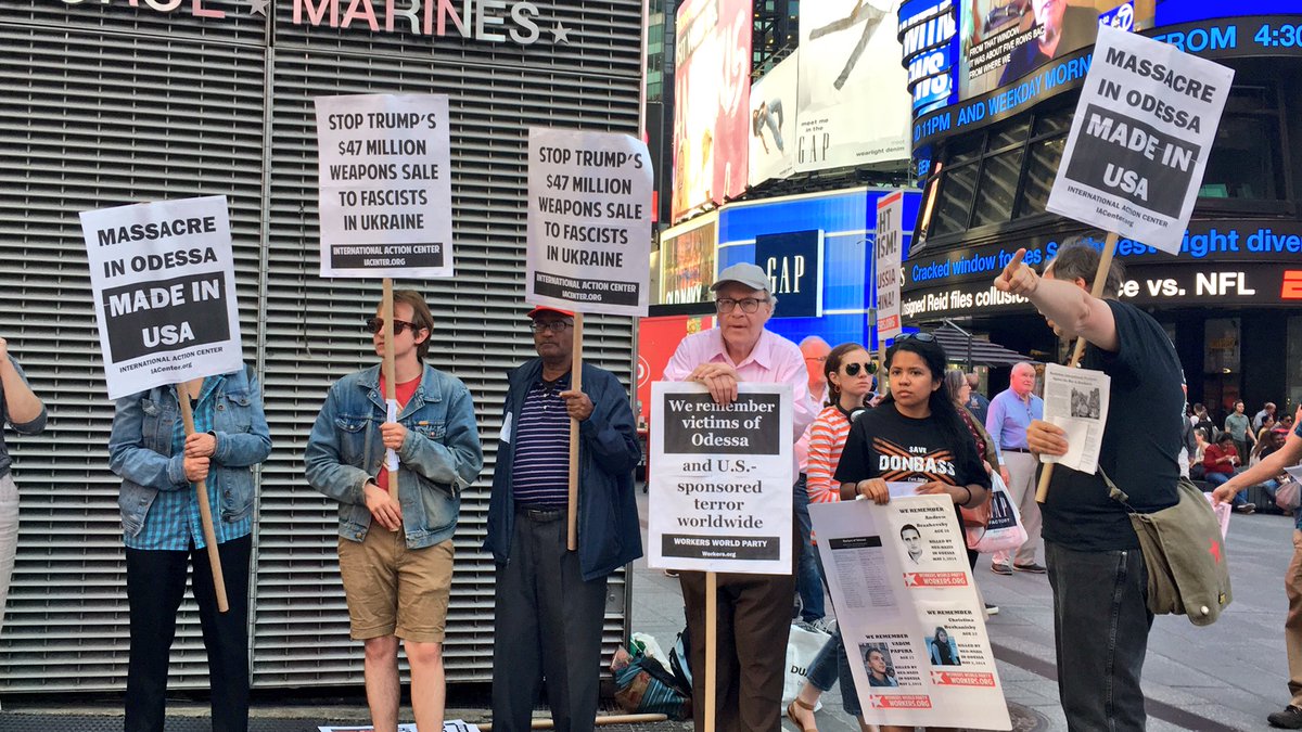 On May 2, the fourth anniversary of the Odessa massacre in Ukraine, the International Action Center held a protest and memorial outside the U.S. Military Recruiting Center in New York’s Times Square.