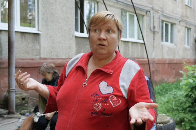 One of the residents of Komarovo, Irina Ivanovna, was interviewed by an independent journalist from the U.S., Patrick Lancaster. She was outraged by what was happening, and she spoke emotionally, impulsively, trying to reach the international community through a foreign journalist.