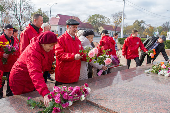 Communists laid flowers at the monument to V.I. Lenin on the day of the Great October Revolution