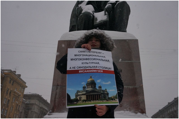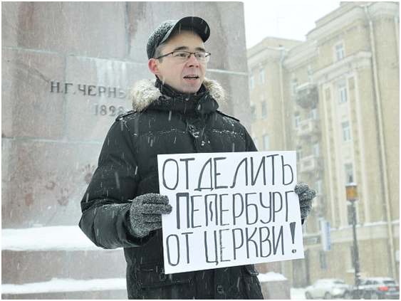 As a result, the action was held in the form of alternating single pickets, who expressed their attitude to the problem of the clericalization of Russia to the applause of the crowd.