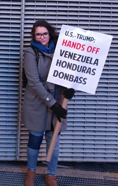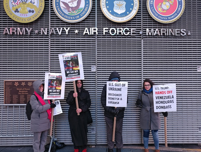 Pickets chanted: “USA, CIA, out of Ukraine! Hands off Venezuela!” Signs also pointed to the need to stop the ongoing war by Ukraine, armed and funded by the U.S./NATO, against the anti-fascist Donetsk and Lugansk People’s Republics.