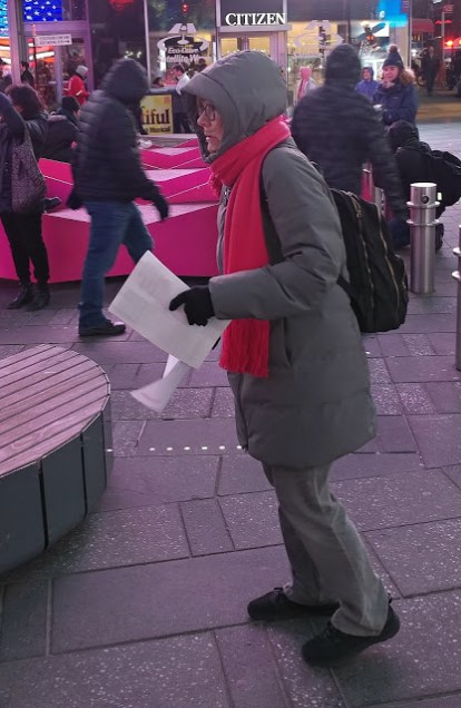 Although bitter cold and high winds made leafleting difficult, many passersby took flyers. Some stopped to listen and expressed solidarity with the anti-war activists.