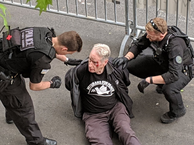 A 72-year-old man, Gerry Condon of Veterans for Peace, was beaten and arrested by U.S. Secret Service last night at the Venezuelan Embassy in Washington, D.C., as he tried to pass food to members of the Embassy Protection Collective inside. The Embassy defenders are there with the permission of President Maduro to safeguard the building against takeover by the fascist supporters of Juan Guaido who have surrounded it. Since May 2, several friends of the Bolivarian Revolution have been brutalized and arrested.