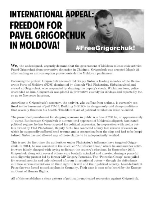 Activists Call for Release of Moldovan Prisoner Pavel Grigorchuk