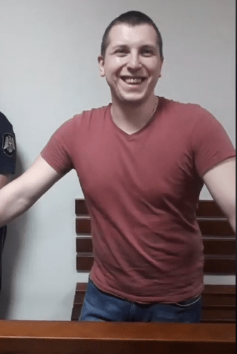 Antifascist activist Pavel Grigorchuk after court announced his transfer to house arrest, June 17. |
