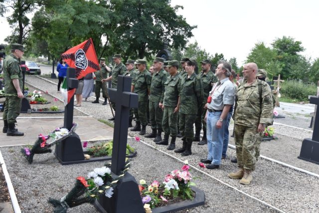 The battalion fighters paid tribute to their fallen comrades and their first commander, Alexey Mozgovoy.