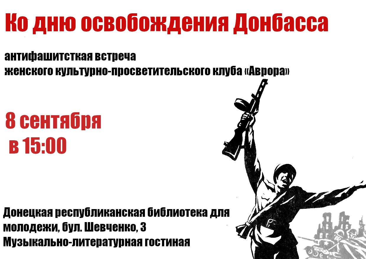 On Sunday, September 8, at 15:00 in the Music and Literature Room of the Donetsk Republican Youth Library (3 Shevchenko Blvd), we will talk about how they liberated the Donbass, about the heroines and heroes of the Red Army and the underground, about those who restored our land.