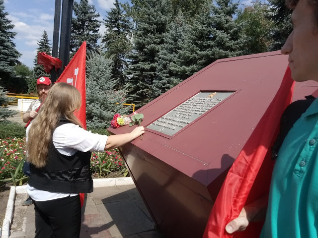 The memorial complex at the mine was created in 1983. We, the communists of Donetsk, visited the site and laid flowers to honor the memory of all those who died at the hands of the Nazi invaders.