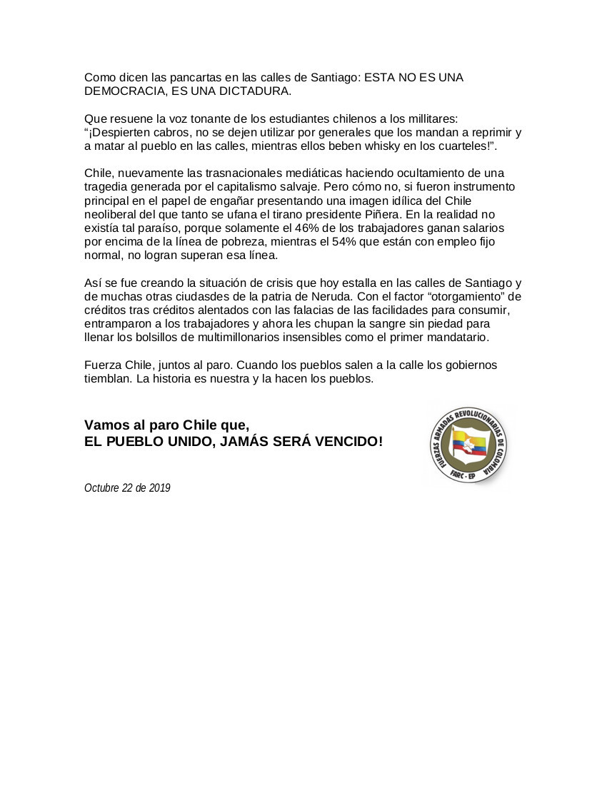 FARC-EP, Solidarity with Chile #1