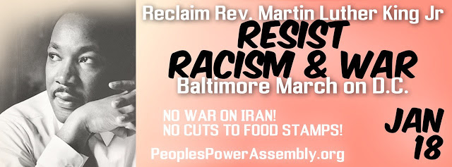 The people of Baltimore are Marching on the Dr. King Jr. weekend. We invite you to join us. If you cannot come to Baltimore, and we expect that many can’t, please hold solidarity actions in your city, town, school or work place.