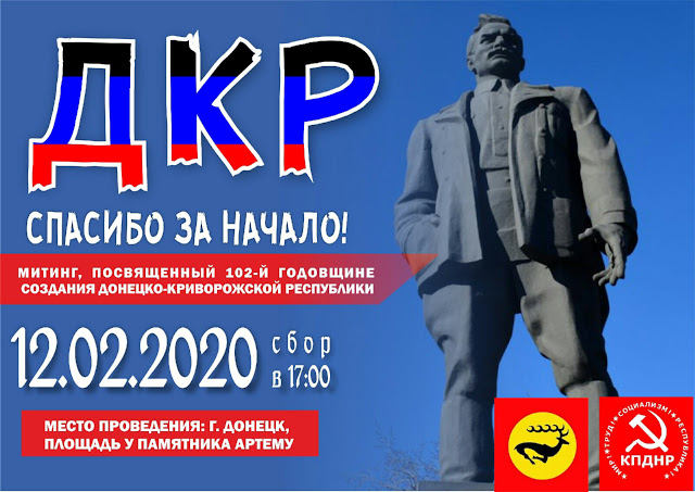 On February 12 in Donetsk, flowers will be laid at the monument to Artem in honor of the 102nd anniversary of the creation of the Donetsk–Krivoy Rog Soviet Republic.