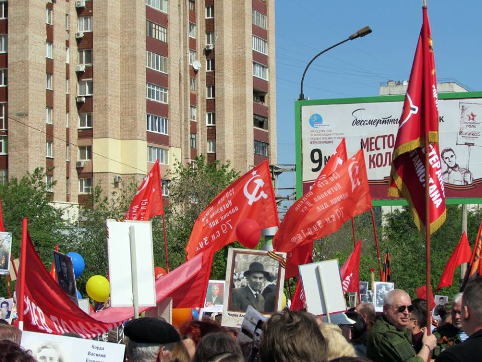 In 2016, I participated in the Victory Day parade with the Lugansk Communists and Komsomol members in Lugansk, capital city of the Lugansk People’s Republic. May 9, celebrated as Victory Day throughout the former Soviet Union, marks the final defeat of Nazi Germany by the Red Army and partisan forces in 1945, after the loss of more than 27 million Soviet lives.