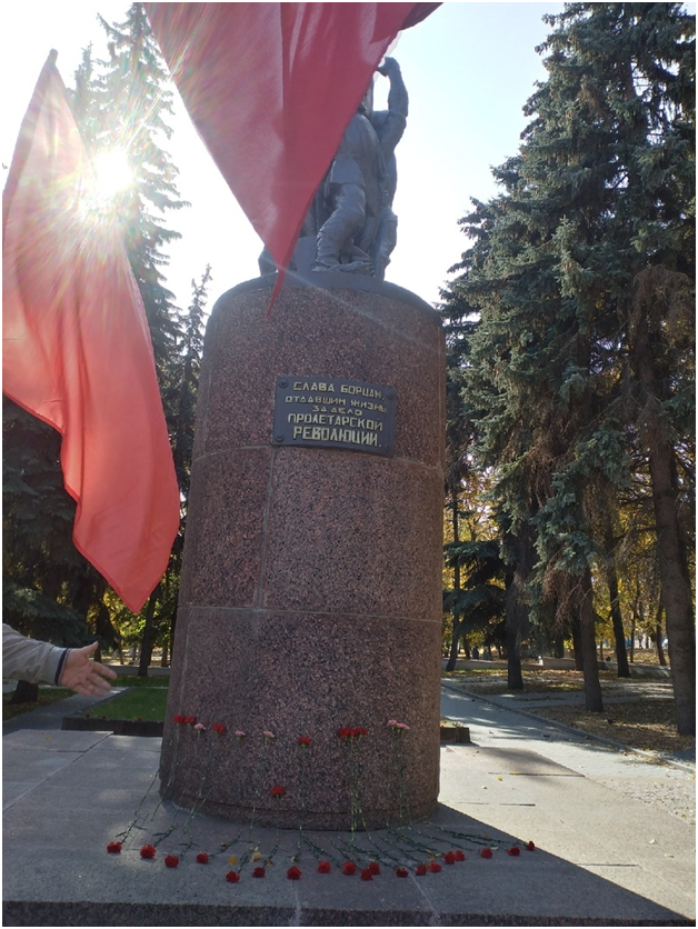 In MOSCOW, our comrades organized the laying of flowers and an impromptu rally that took place on October 3 at the walls of the House of the Government of Russia (formerly the House of Soviets).