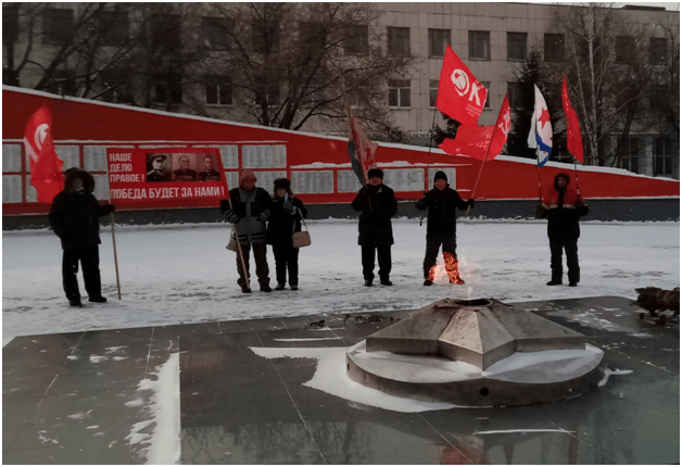 In MIASS, Chelyabinsk region, representatives of local communist organizations (OKP, Russian Communist Workers’ Party-RKRP) laid flowers at the Eternal Flame.