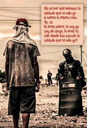 Duque is a conceited tyrant, who does not understand that the people are the vast majority and that it is the force that can; that we are more, much more, than the repressive force that surrounds us. We are millions and millions of rebels fighting for a New Colombia, stimulated by the certainty that the people in uniform also dream our same dreams of human dignity. Let the soldiers no longer allow themselves to be used by vandals like Duque and Uribe, who have destroyed social justice and the most important of all our rights, which is peace. Duty in this case calls soldiers and policemen to insubordination and disobedience, and to turn their backs on deranged generals like Zapateiro and Vargas, and on the defense minister, who has ordered them to fire on the defenseless population.